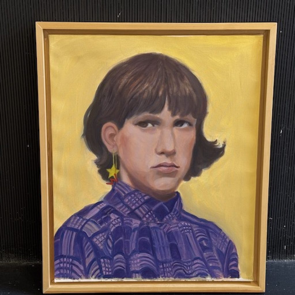 I also found Amina Rezki’s paintings to be equally captivating. Rezki is a Moroccan artist based in Brussels and she is represented by Loft Art Gallery. The gallery describes her paintings as emerging from a place of “instinct, imagination and spontaneity.” This approach is illustrated in the above untitled painting, where the figure’s intense sideway gaze, and her pursed lips point to a moment of discreet observation or annoyance. It made me ask what is she looking at? The mood in this picture is one of pure curiosity.