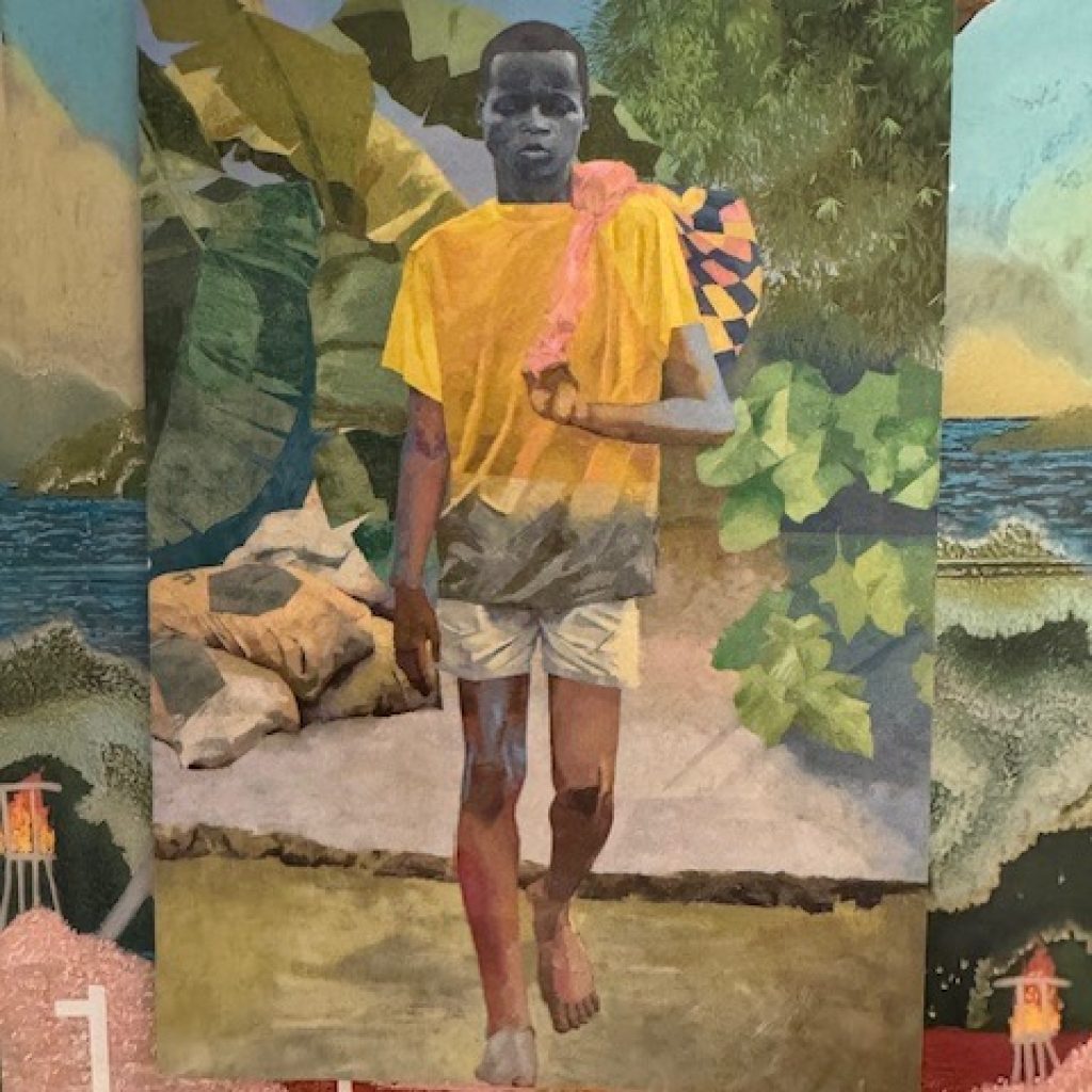 This year, there were many moments that truly stood out to me, especially the paintings and sculptures featured in the Fair. One new artist who captured my attention was David Mbuyi. With a bold and compelling point of view –Mbuyi’s work indicates a promising future that is impossible to deny. Mbuyi is a Congolese figurative painter, represented by Nathan Chiche Gallery. His oil paintings radiate with poise and depth as evidenced in the above untitled image. In this painting, a young man walks barefoot, eyes cast down and lost in his own thoughts. His stride is confident, his environment is lush with green plantain leaves that form a geometric canopy around him. This striking image evokes a sense of purpose, serenity and the ease of being immersed in one’s thoughts.