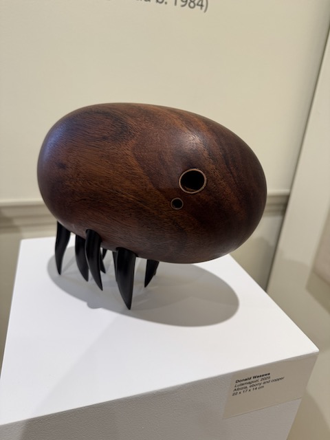 Sculptures made a big splash at this year’s contemporary art fair. Highlights included Zimbabwean artist Xanthe Somers of October Gallery, whose eyecatching weaved ceramic pots were delightful to see. Cyrus Kabiru’s playful, imaginative eyewear and helmet sculptures are always a top pick. Similarly, Ugandan artist, Donald Wasswa’s of Circle Art Gallery, presented ebony and copper baby hippo sculptures which added a whimsical and pleasant touch to the showcase.