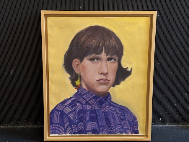 I also found Amina Rezki’s paintings to be equally captivating. Rezki is a Moroccan artist based in Brussels and she is represented by Loft Art Gallery. The gallery describes her paintings as emerging from a place of “instinct, imagination and spontaneity.” This approach is illustrated in the above untitled painting, where the figure’s intense sideway gaze, and her pursed lips point to a moment of discreet observation or annoyance. It made me ask what is she looking at? The mood in this picture is one of pure curiosity.
